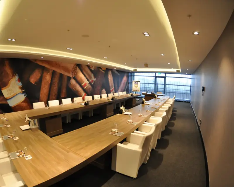 Industrie 3 mit U-förmigem Aufbau ist der ideale Ort für interaktive Workshops, Schulungen oder Meetings bis zu 30 Personen. Der Sitzungssaal verfügt über natürliches Tageslicht, schalldichte Wände und moderne audiovisuelle Technik wie zum Beispiel einen eingebauten Beamer mit Projektionsschirm. Der Sitzungssaal ist auch für Rollstuhlfahrer zugänglich und die Beleuchtung kann mit dem Touchscreen-Panel nach Ihren Wünschen eingestellt werden. Der Sitzungssaal befindet sich im zweiten Stock.