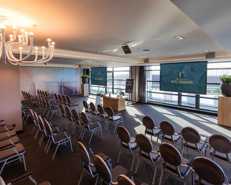 Eindhoven 5 is een ideale locatie voor een vergadering, training, presentatie of diner. De zaal beschikt over natuurlijk daglicht en moderne audiovisuele technologie zoals een ingebouwde beamer. Ook is de zaal rolstoeltoegankelijk. De verlichting in de zaal kan volledig naar wens worden ingesteld met het touchscreen paneel. De zaal bevindt zich op de eerste verdieping.