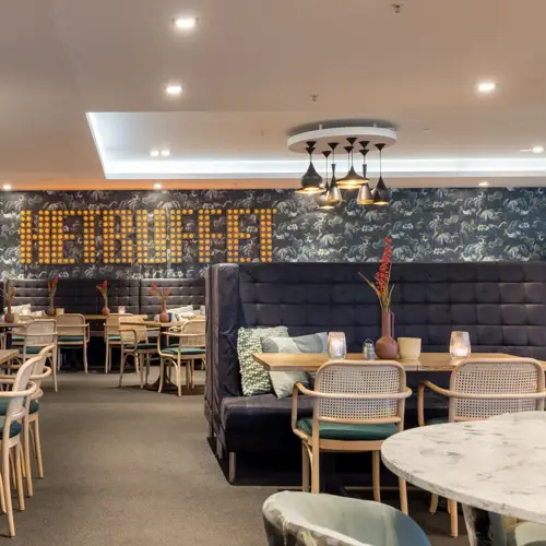 Van der Valk Hotel Eindhoven biedt drie culinaire ervaringen onder één dak. In Bistro Chez Maman geniet je van à-la-cartegerechten met verse streekproducten. Restaurant Het Buffet serveert dagelijks een uitgebreid ontbijtbuffet en op zaterdag een live cooking dinerbuffet. Voor sushi, huisgemaakte burgers en cocktails kun je terecht bij de trendy hotelbar OZZO Food & Drinks.